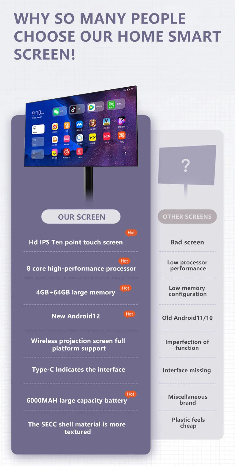 21.5 Inch Battery-power Stand By Me Tv In-cell Touch Screen Gym Gaming Live Room Smart Tv