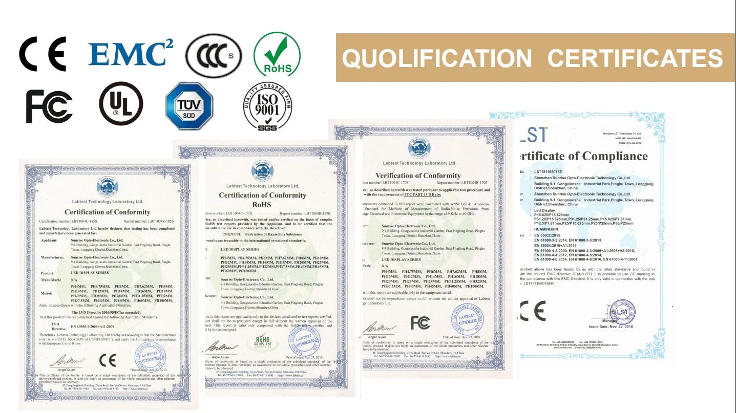 ETL, FCC, CCC, RoHS, CE