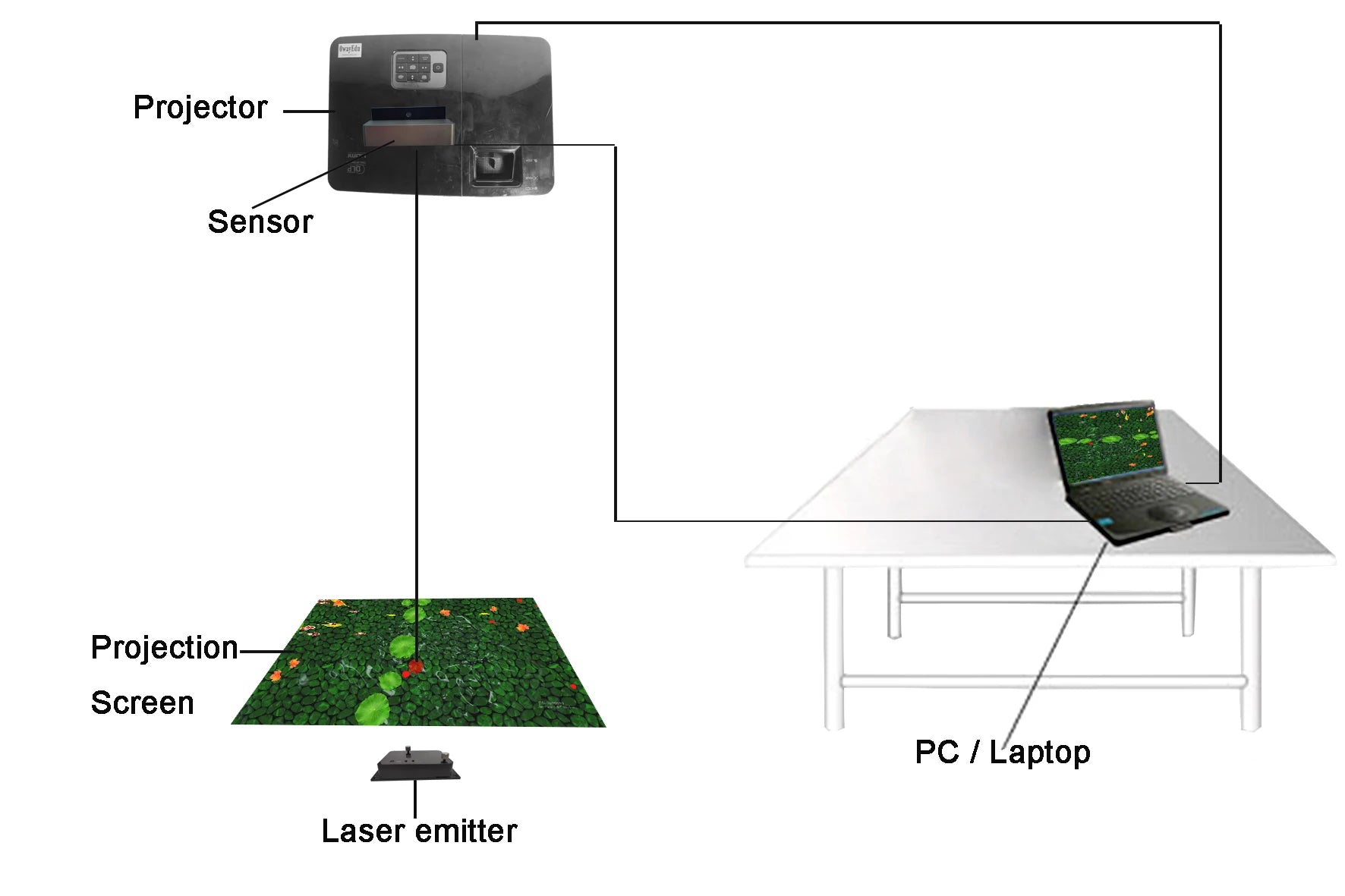 it can work with any projector (or TV) and Windows XP/VISTA/7/8/10/11 for education,presentation and games, for the games part: it allows 100 kids to play the games on any flat surface,like TV, Wall, floor, whiteboard with finger, throwing ball, laser gun,shooting gun etc.