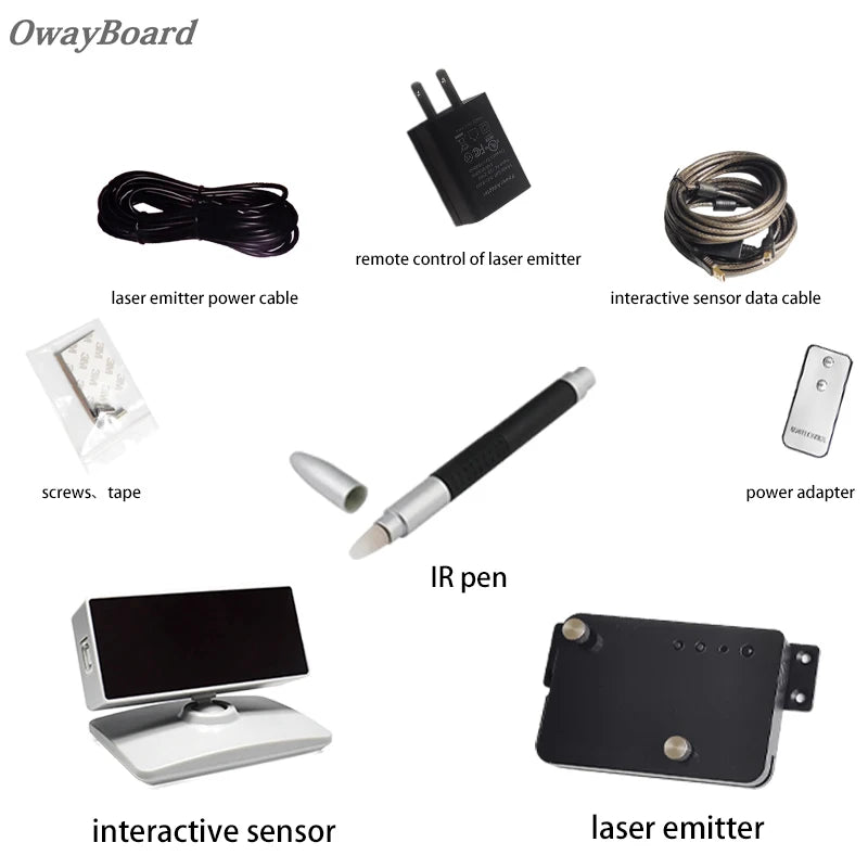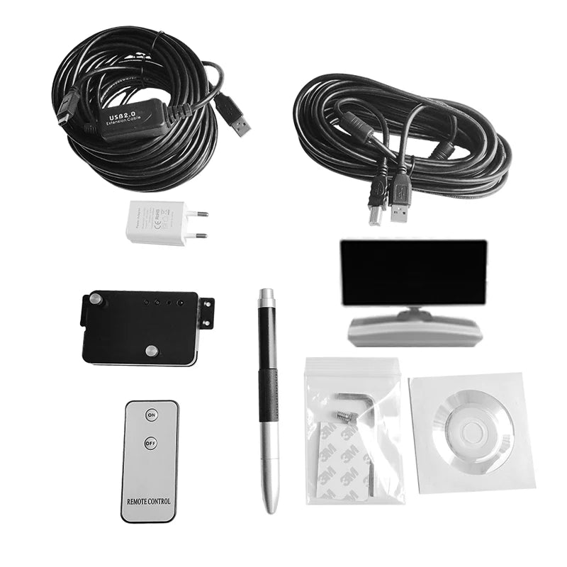 1.Sensor、2.Emitter、3.IR pen、4.USB cable(10m)、5.Remote、 6.Power adaptor、7.CD with software |