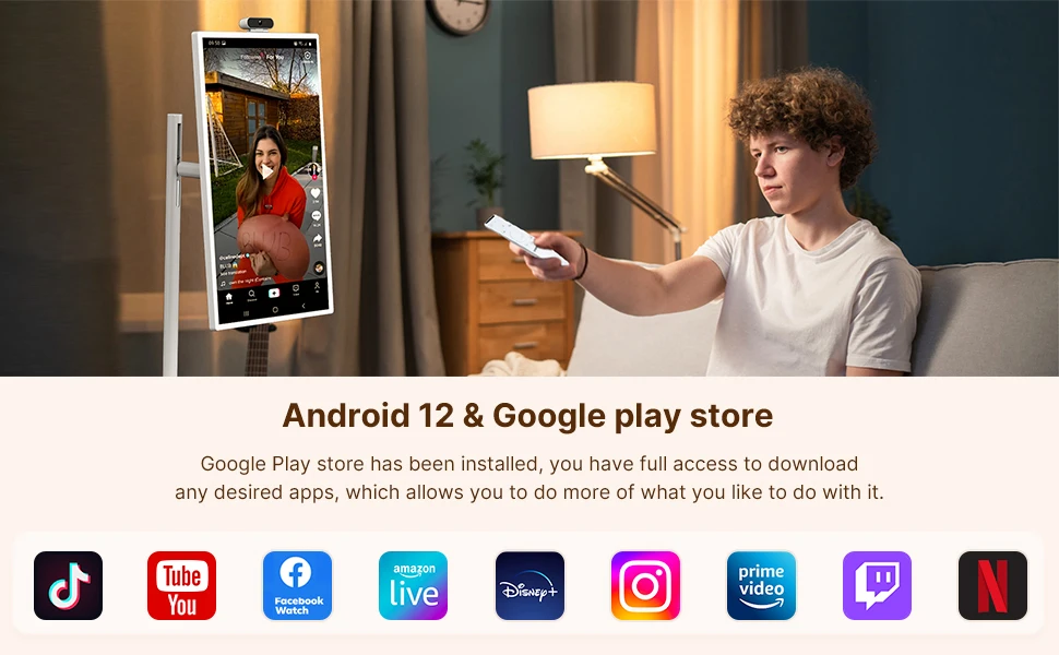 Mobile TV 32 inch Floor Standing Intelligent Touch Screen Android System/Home/8+128GB/AI Voice Remote Control Office use